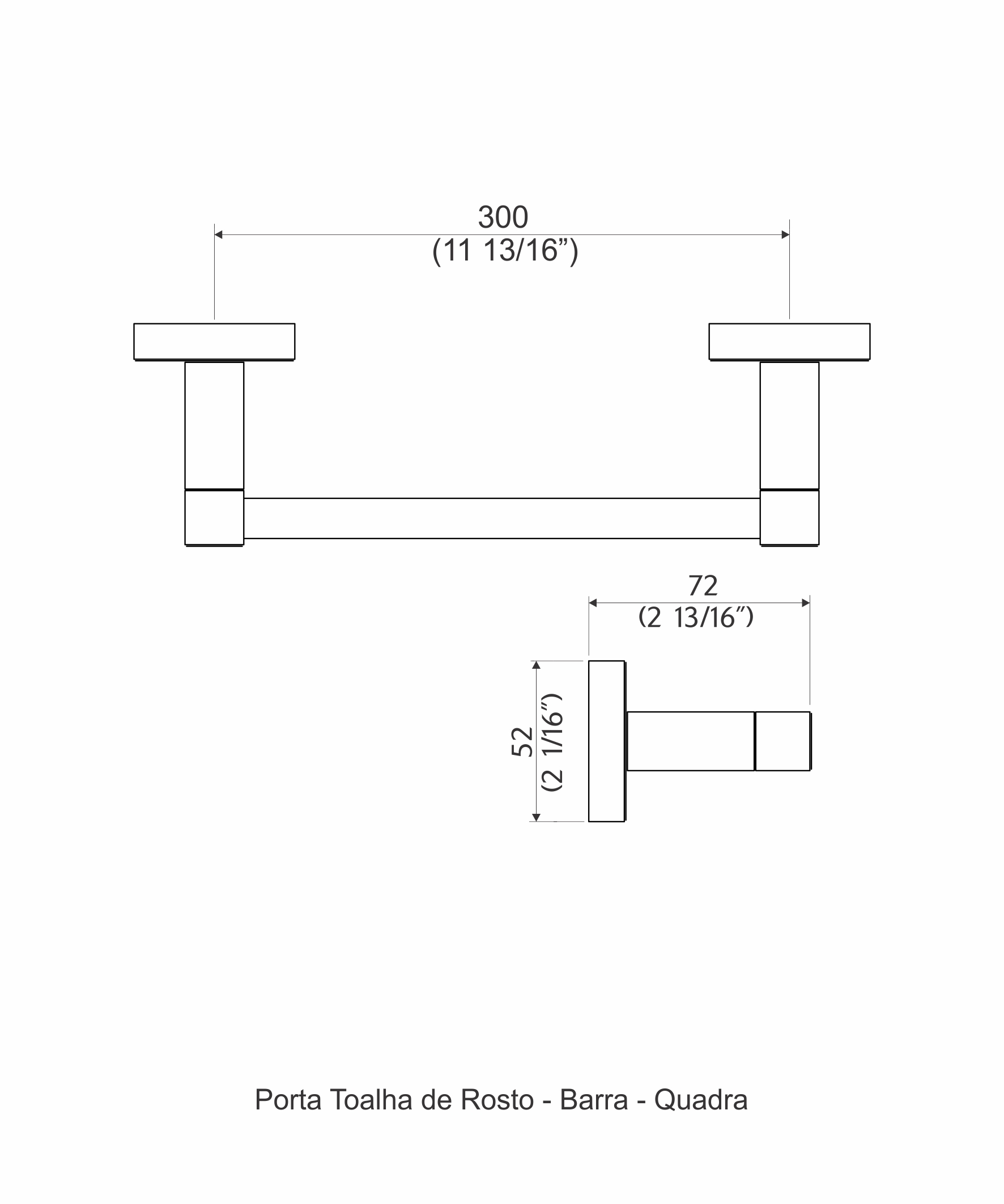 PORTA TOALHA ROSTO BARRA QUADRA 30CM